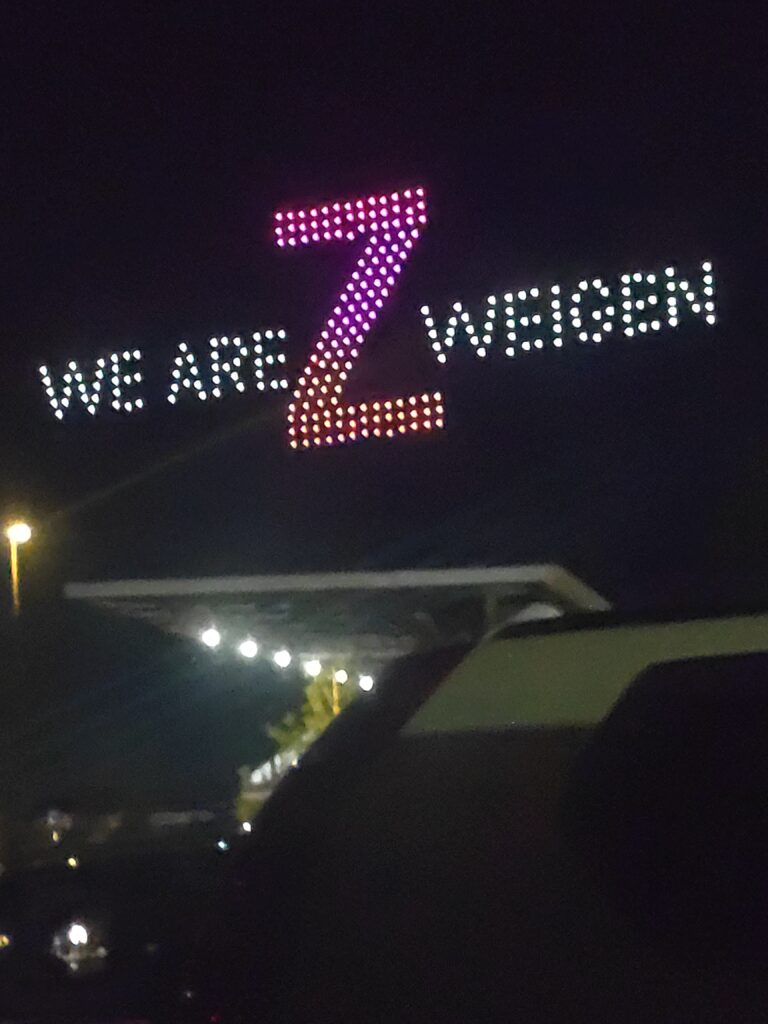 試合後にドローンショーが!