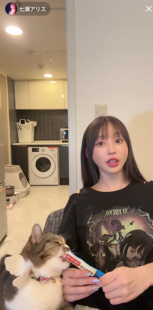 ファンの方からのチュールを嬉しそうに食べるごまちゃん!(アリスさんの愛猫、女の子)